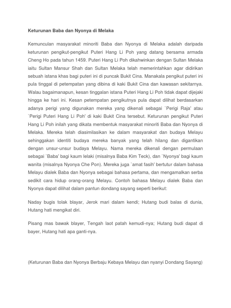 Contoh Ayat Baba Nyonya